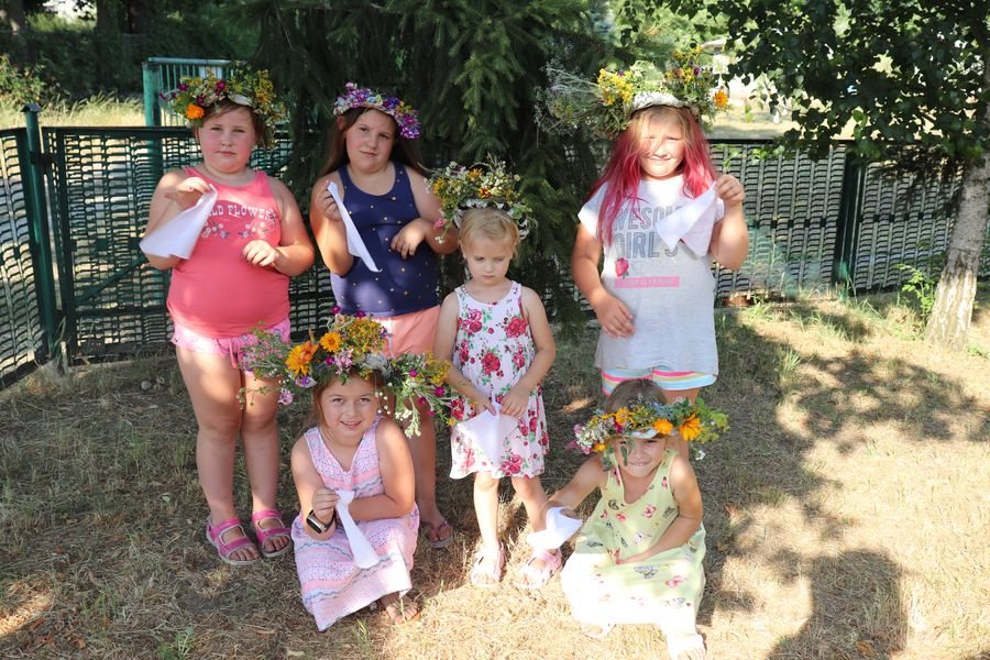 Warkocze dziewcząt, wianki, woda i ogień, kwiaty i zioła – dawniej, kiedy jeszcze ludzie bardziej słuchali Natury niż teraz, wiele z tych elementów pomagało im oswoić przejściowe momenty w życiu. Dlatego właśnie, zorganizowaliśmy po raz kolejny zajęcia biblioteczne na ogródkach działkowych, gdzie mogliśmy najlepiej poczuć klimat zwyczajów związanych z Nocą Świętojańską. Dzięki uprzejmości Działkowców mogliśmy pospacerować po okolicy i nazbierać dzikich kwiatów i traw, z których metodą warsztatową upletliśmy pachnące wianki. Podczas tej zabawy nauczyliśmy się współpracy w grupie, przemyciliśmy kilka ciekawych informacji o puszczaniu wianków na wodzie oraz poznaliśmy pięknie wydane książki. Serdecznie dziękujemy paniom, które podarowały nam kwiaty ze swoich ogrodów na tę okazję. Zajęcia przyniosły dzieciom sporo wyśmienitej zabawy i nowych doświadczeń.