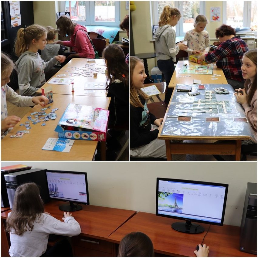 Dzieci angażowały się w prace plastyczne, projektowanie przestrzenne z materiałów wtórnych, gry planszowe i komputerowe czy tworzenie komiksów w programie graficznym. Chętne dzieci wzięły udział w spotkaniu walentynkowym na ogródkach działkowych, które poprowadziła pani Elżbieta Poprawska. Najmłodsi mieli okazję dobrze się bawić, tworząc własne kostiumy karnawałowe, makiety i domki z tektury. Jednym słowem - w naszej bibliotecznej "zaczarowanej zagrodzie" było bardzo wesoło i kreatywnie, a ferie zaliczamy do udanych. Dziękujemy wszystkim, którzy wsparli bibliotekę w tym czasie.
