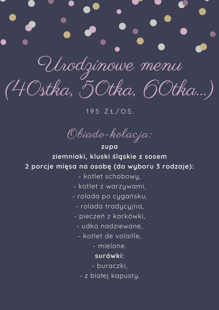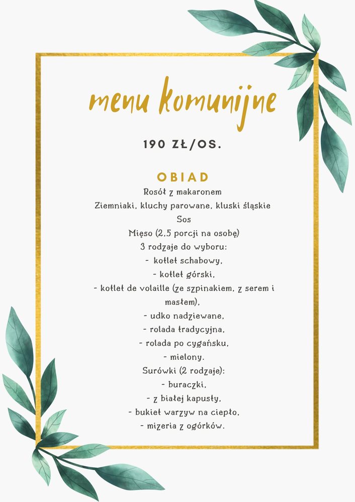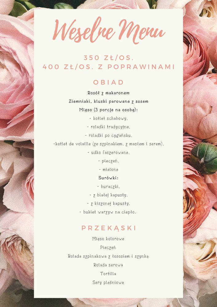 Zapewniamy kompleksową organizację, przystępne ceny, menu ustalane indywidualnie.