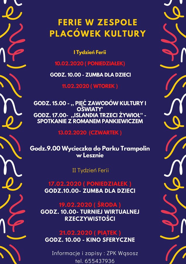 Informacje i zapisy ZPK Wąsosz tel 655437936. Serdecznie zapraszamy!